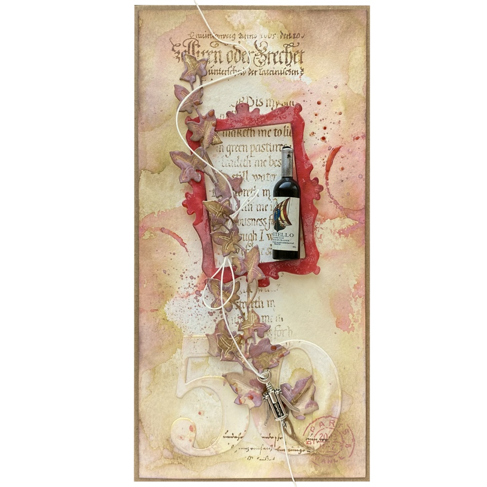 Originální dárkové přání, které potěší každého milovníka vína. Elegantní design je doplněn kovovou dekorací a stylovou imitací láhve červeného vína, díky čemuž působí luxusně a slavnostně.