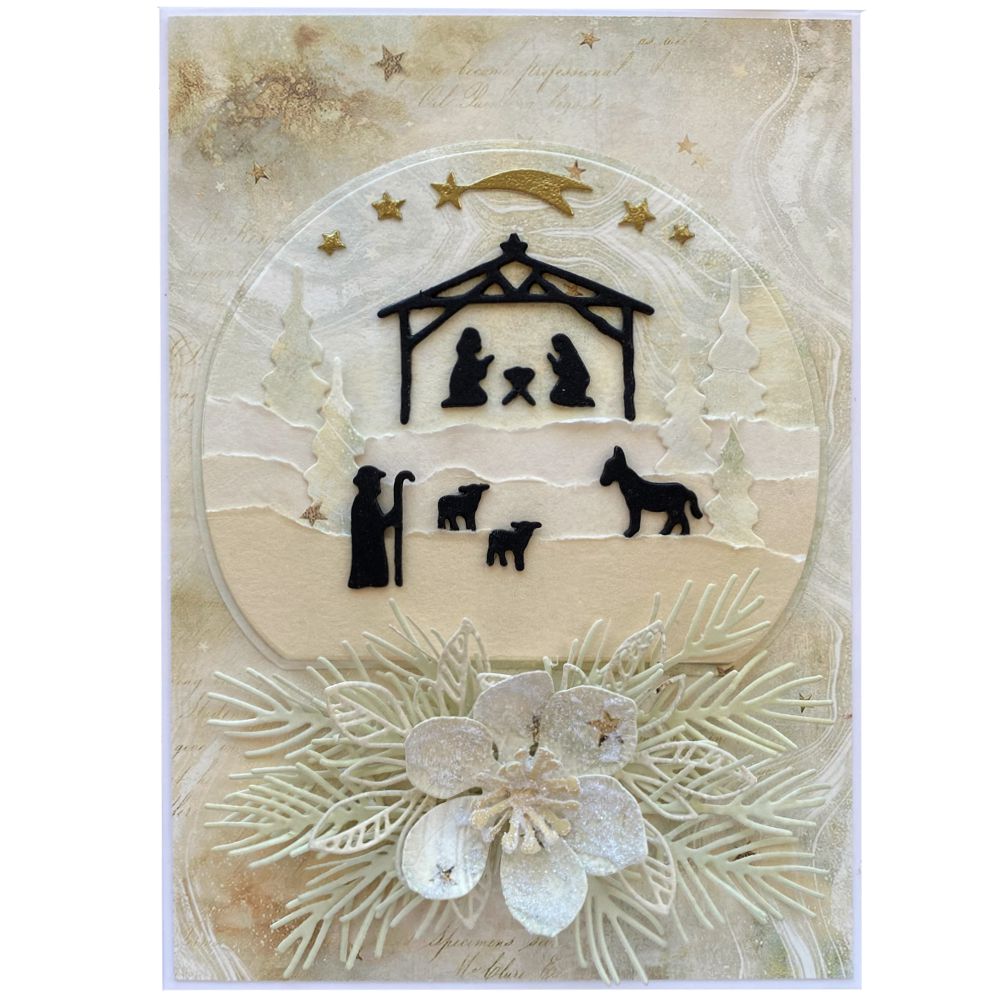 Základ je rozevírací papírové přání (bílé, gramáž papíru 300g). Papírová dekorace.
