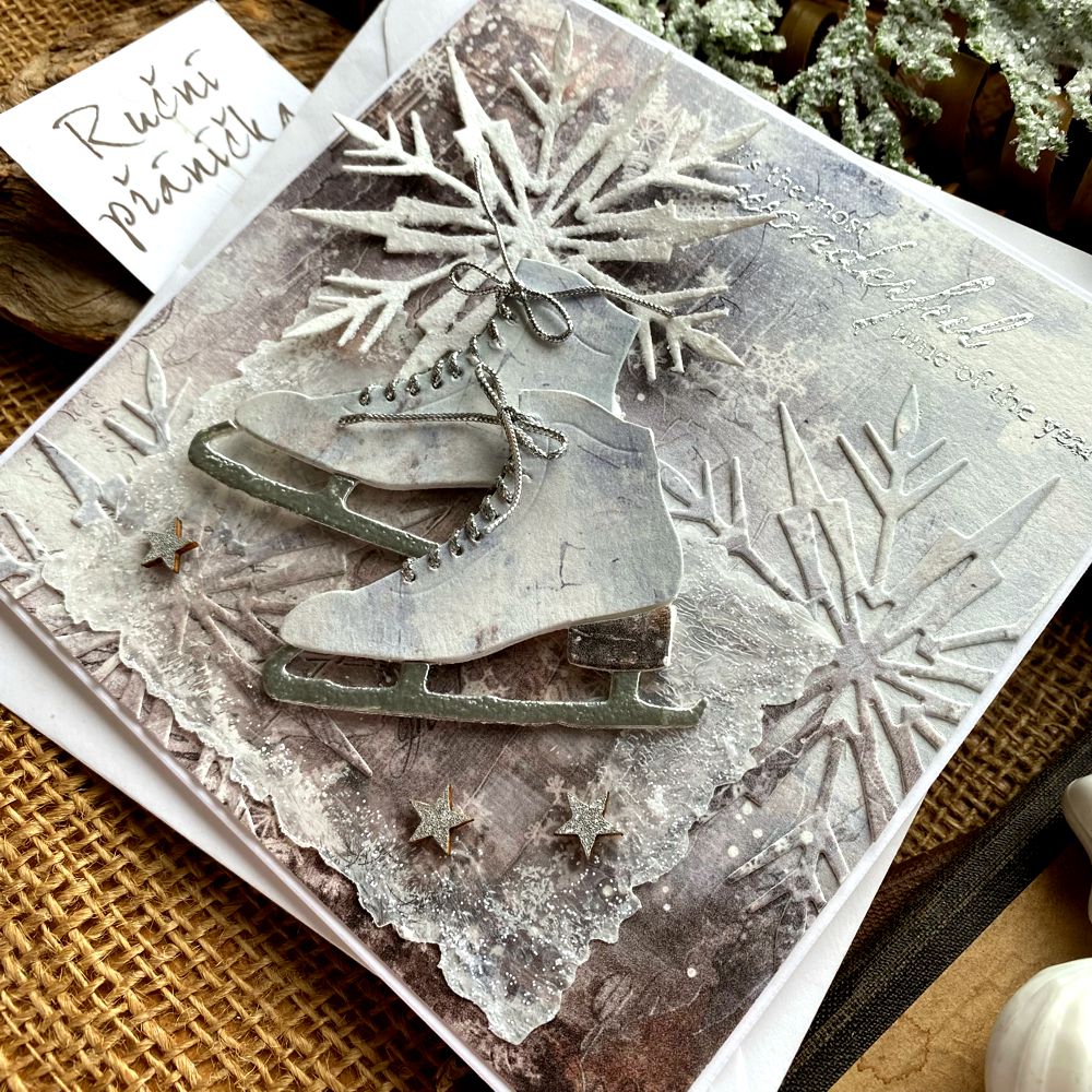 Ledové zimní nebo vánoční přáníčko. Brusle na ledě.