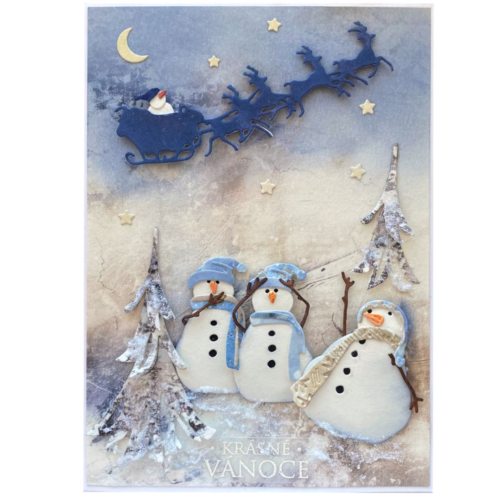 Základ je rozevírací papírové přání (bílé, gramáž papíru 300g). Papírová dekorace.