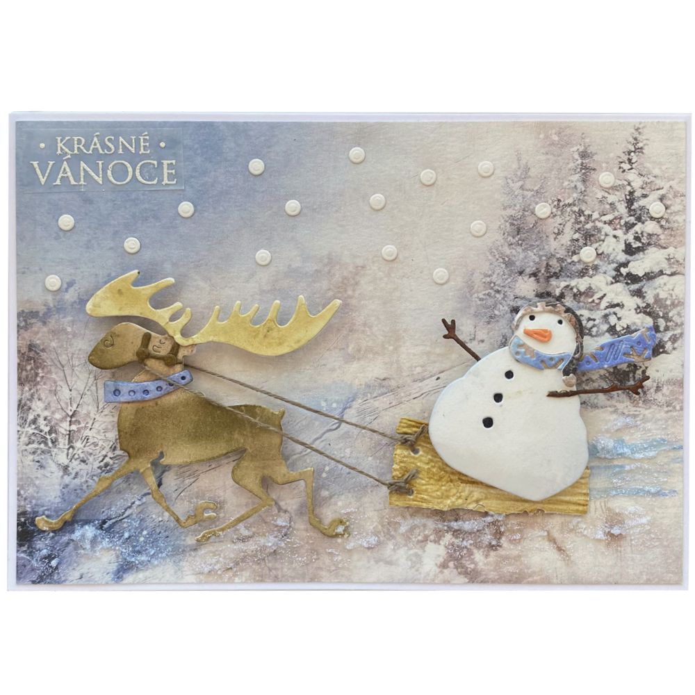 Vánoční přáníčko - Sněhuláci - jízda se sobem 2