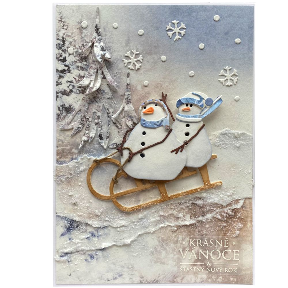 Základ je rozevírací papírové přání (bílé, gramáž papíru 300g). Papírová dekorace.