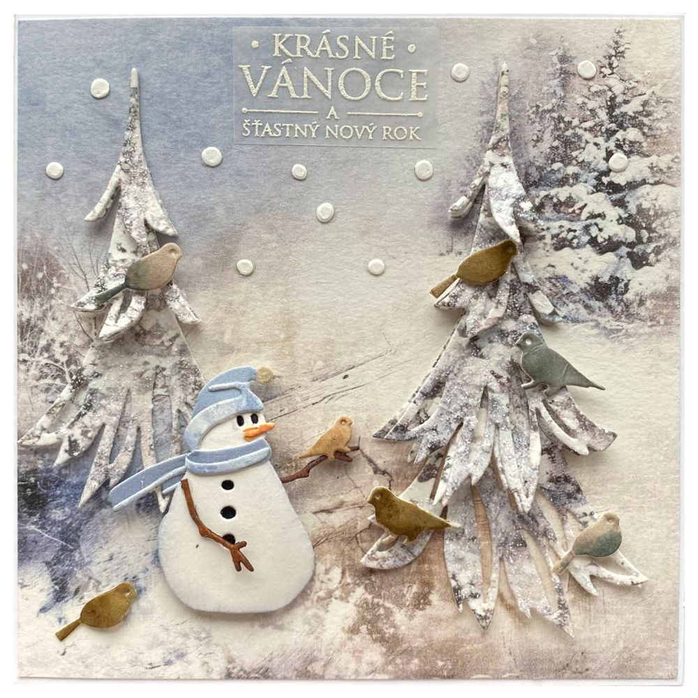 Vánoční přáníčko - Sněhulák s ptáčky 3